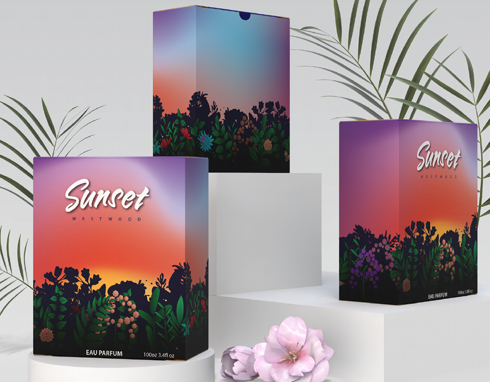 Sunset is a fictional perfume brand created to explore artistic packaging design in the beauty space. The concept combines soft, romantic visuals with bold collage techniques to evoke a sense of warmth, self-expression, and escape. This project focuses on how visual storytelling and surface design can transform packaging into an emotional experience for the consumer.