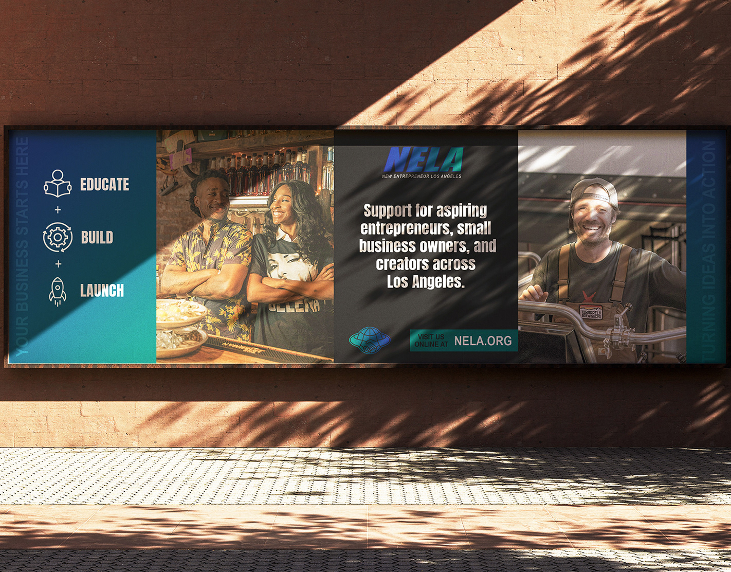 NELA, or New Entrepreneur Los Angeles, is a fictional brand identity created for a business development network supporting new entrepreneurs in L.A. The design focuses on clarity, connectivity, and professionalism — with a modular logo system and flexible visual language that can adapt across events, workshops, and marketing materials. This project explores how branding can empower economic growth and local innovation.