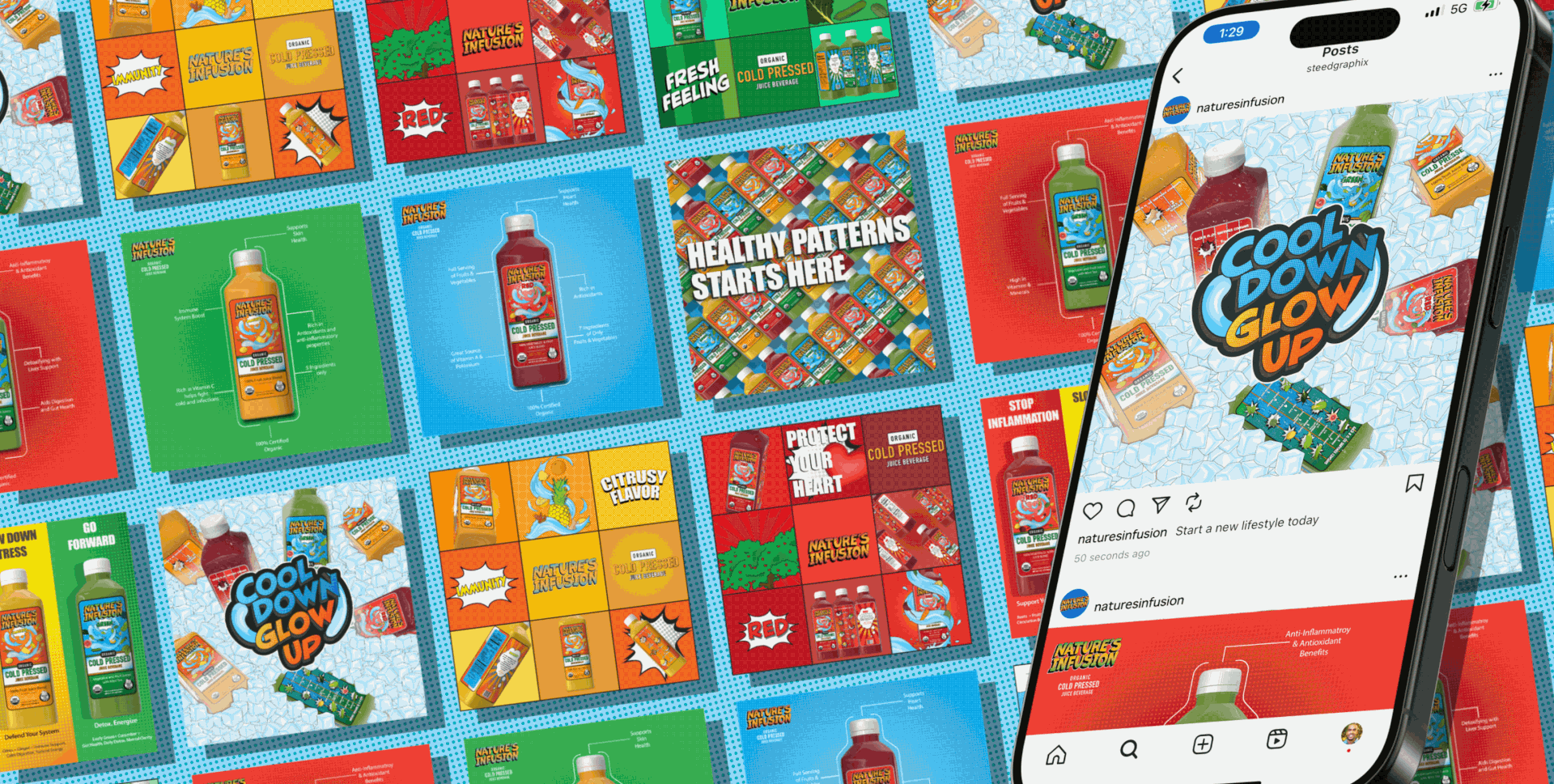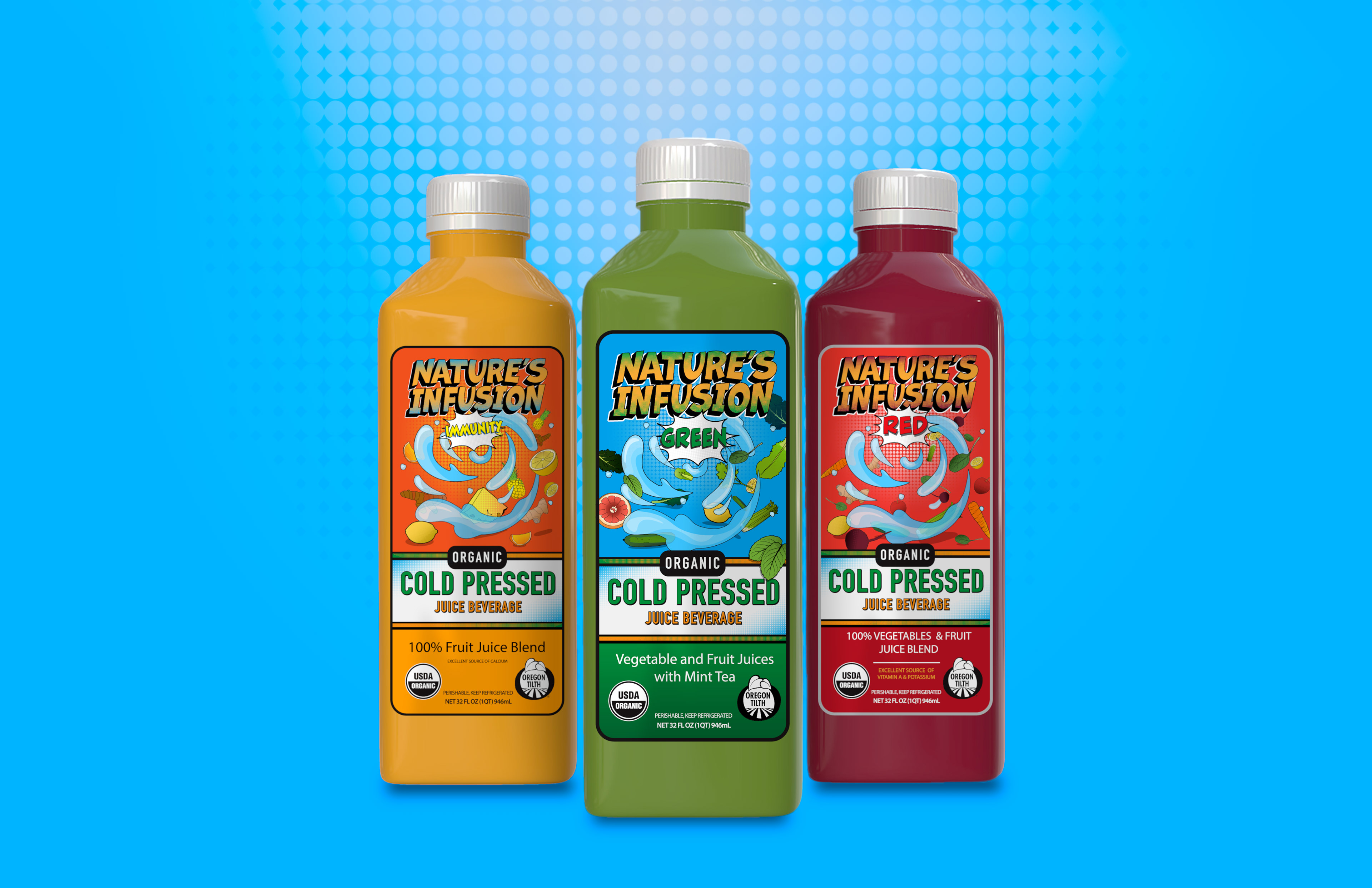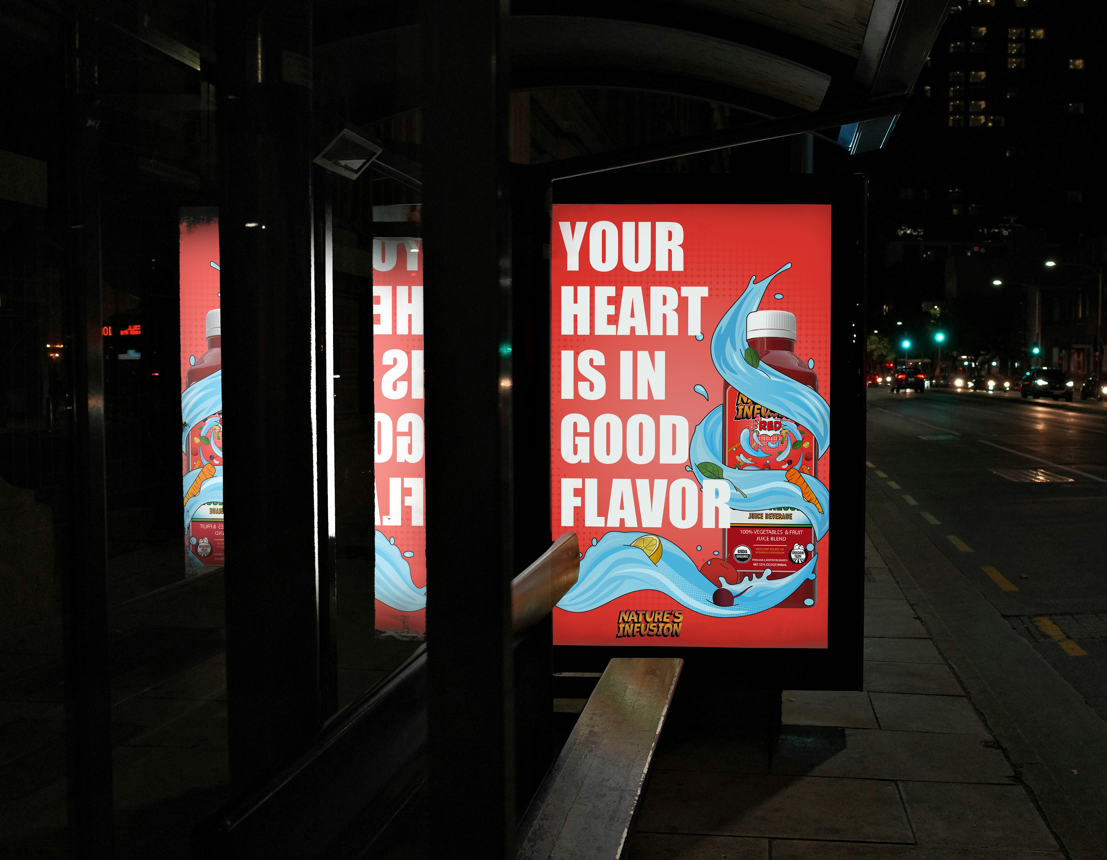 Nature’s Infusion is a conceptual rebrand of an organic cold-pressed juice line by Trader Joe’s. The goal was to modernize the brand for a younger audience by combining nutritional clarity with expressive, art-forward design. I developed a full brand identity system, including logo, typography, color palette, and label design for multiple juice flavors. The branding was extended across packaging, social media content, and a print campaign that communicated the functional benefits of each juice through accessible, benefit-driven messaging. This project focuses on blending wellness with creativity to make healthy habits more inviting and repeatable.