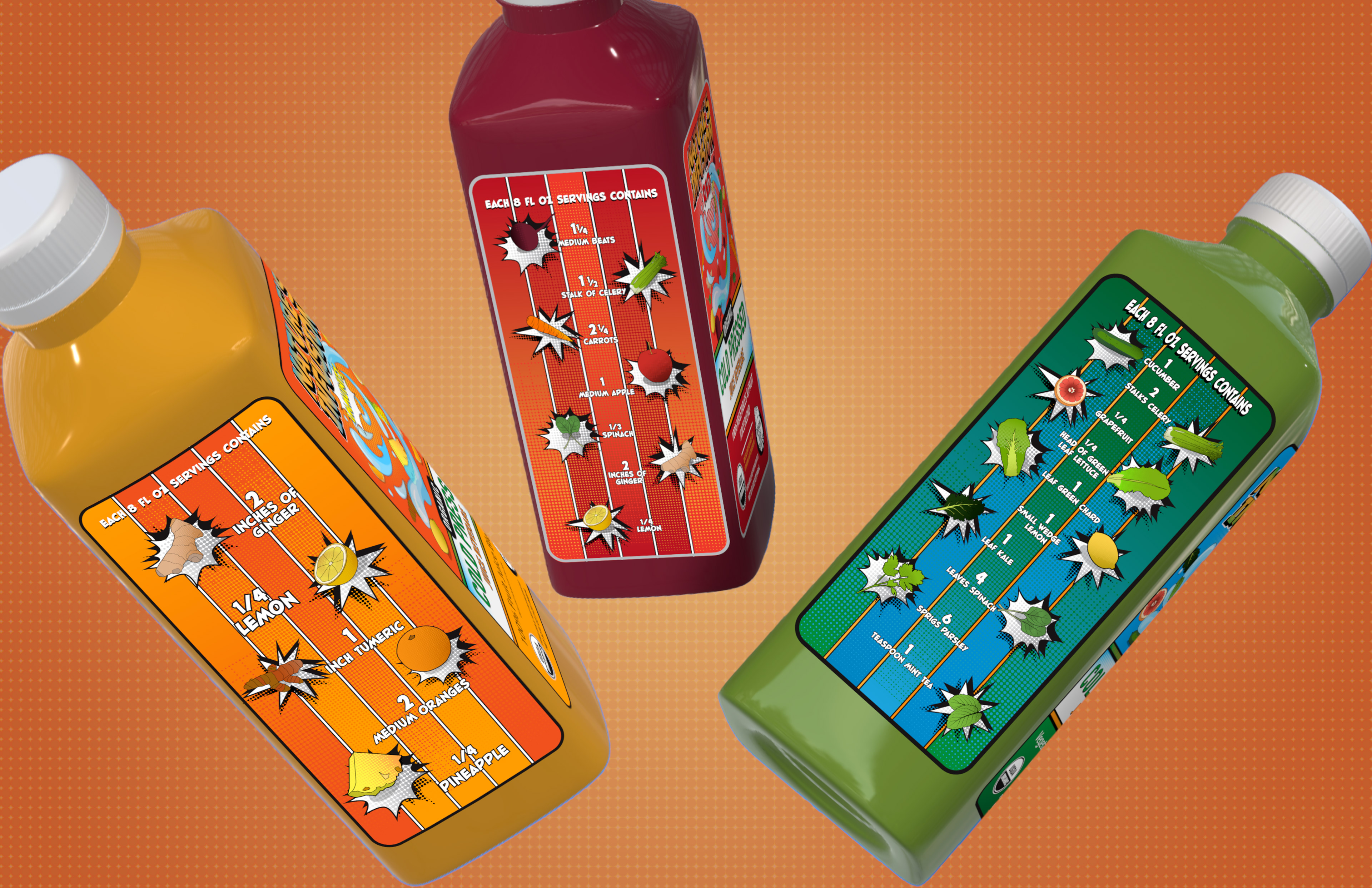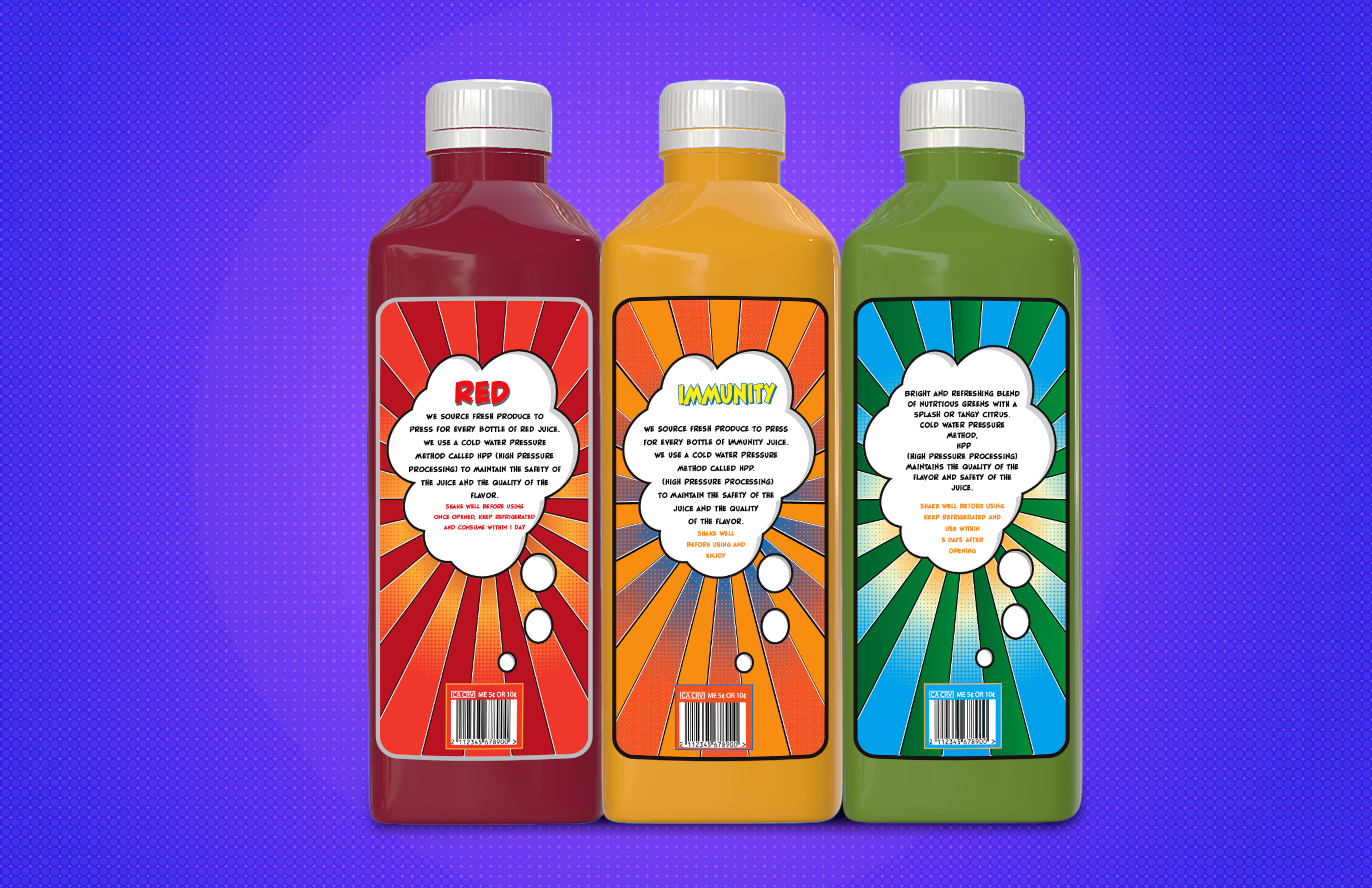 Trader Joe’s organic cold-pressed juices are minimally processed beverages made from fruit and vegetable blends, aimed at health-conscious consumers. The line includes options like green juice, made with kale, spinach, celery, cucumber, and apple for a vegetable-forward detox drink, and red juice, which features beets, carrots, apples, and ginger to support circulation and natural energy. While nutritious, the original packaging is understated and lacks the strong visual identity needed to stand out on shelves or speak to a younger, lifestyle-driven audience.
